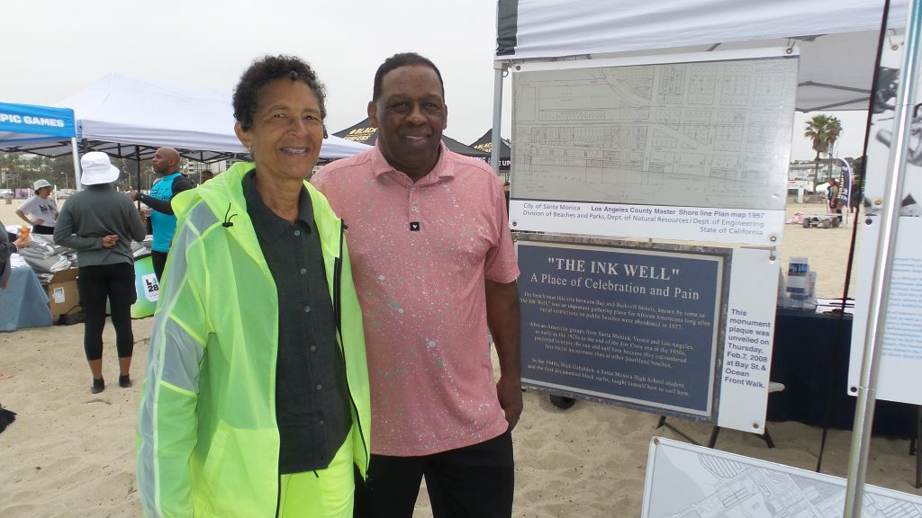The Black Surfers Collective (BSC) honored the legacy of Nick Gabaldón by hosting its annual community surf event on June 7 at Inkwell Beach in Santa Monica. Gabaldón is recognized as California’s earliest known African American surfer, and the Inkwell is a historic Black beach dating back to the Jim Crow era, one of the few places where Black Angelenos could safely enjoy the ocean. It was derogatorily referred to as “The Inkwell” by nearby Anglos in reference to the skin color of the beachgoers.